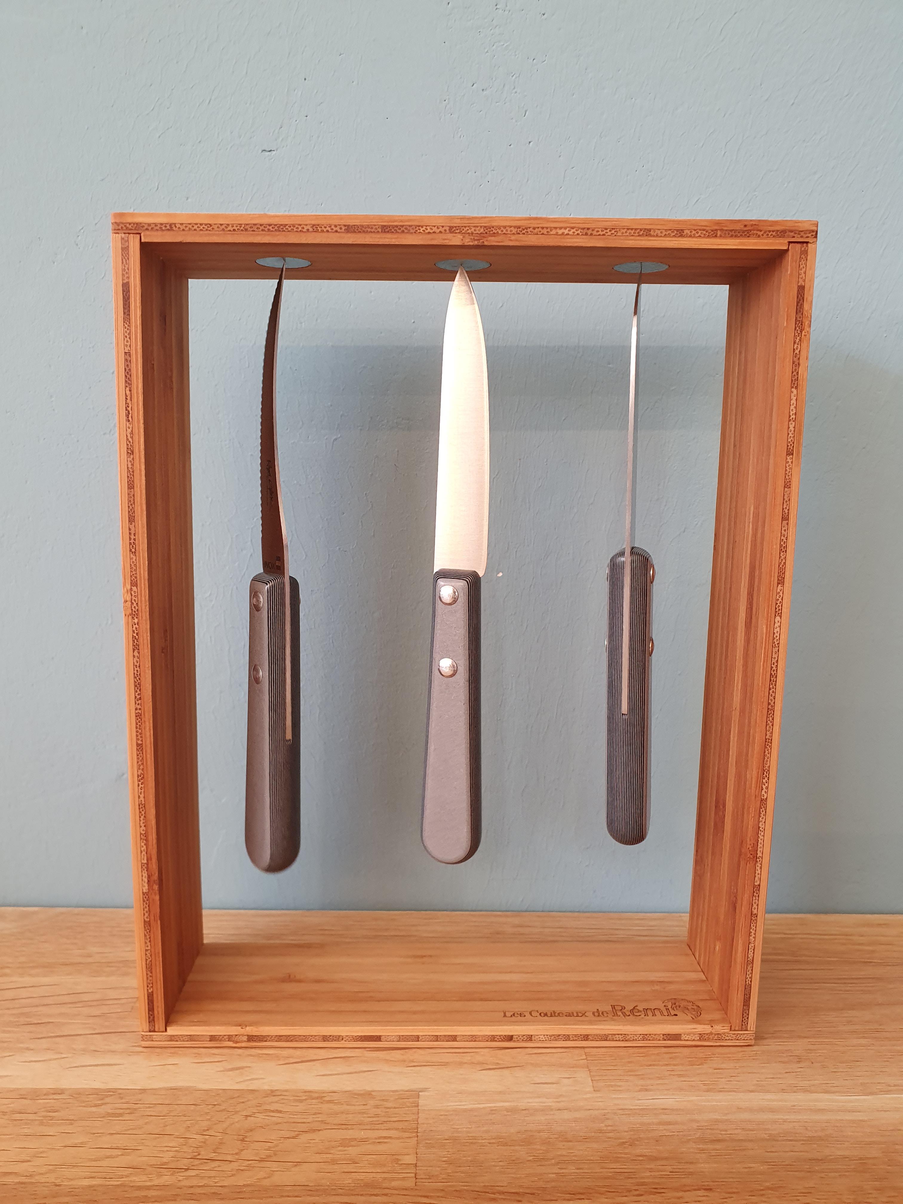 Messerset Grau im Holzrahmen